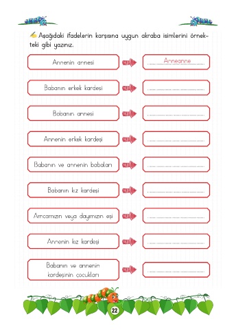 Aşağıdaki ifadelerin karşısına uygun akraba isimlerini örnek-