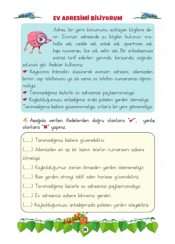 * Tanımadığımız kişilerle ev adresimizi paylaşmamalıyız.