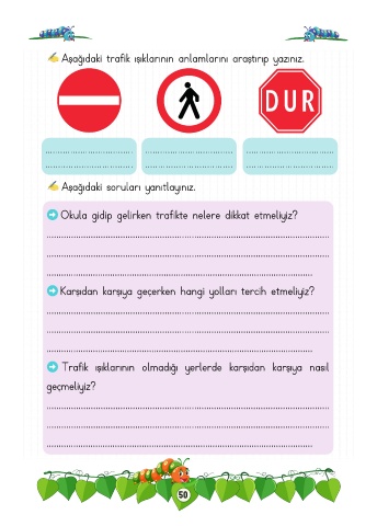 Aşağıdaki trafik ışıklarının anlamlarını araştırıp yazınız.