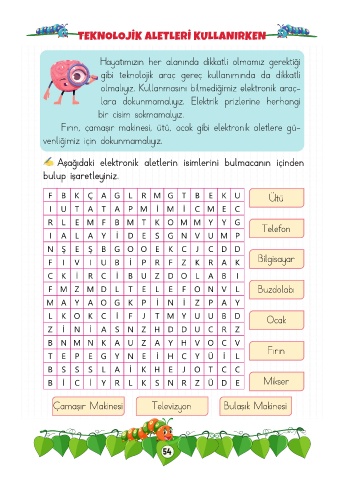 Aşağıdaki elektronik aletlerin isimlerini bulmacanın içinden