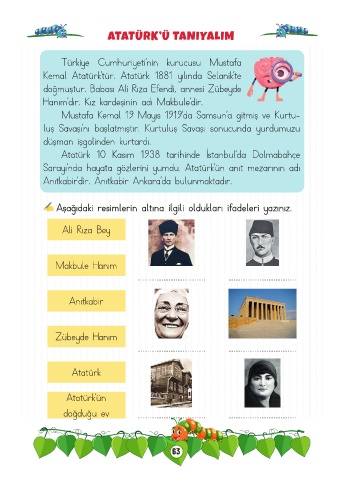 Aşağıdaki resimlerin altına ilgili oldukları ifadeleri yazınız.