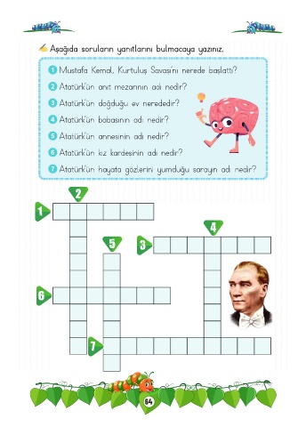Aşağıda soruların yanıtlarını bulmacaya yazınız.