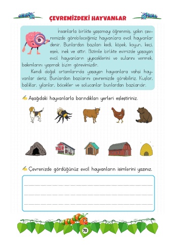 Aşağıdaki hayvanlarla barındıkları yerleri eşleştiriniz.