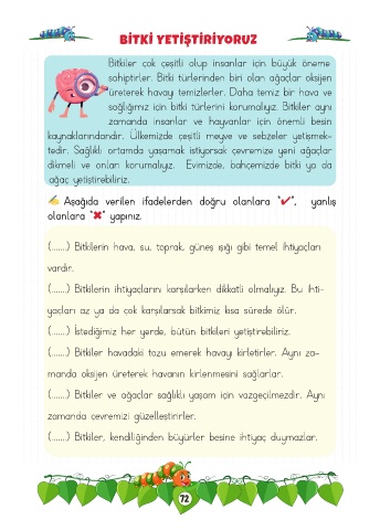 (.......) Bitkiler ve ağaçlar sağlıklı yaşam için vazgeçilmezdir. Aynı