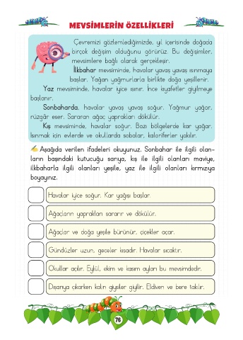 ların başındaki kutucuğu sarıya, kış ile ilgili olanları maviye,