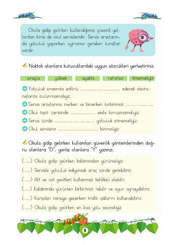➡ Servis içinde ........................................ yolculuk etmemeliyiz.