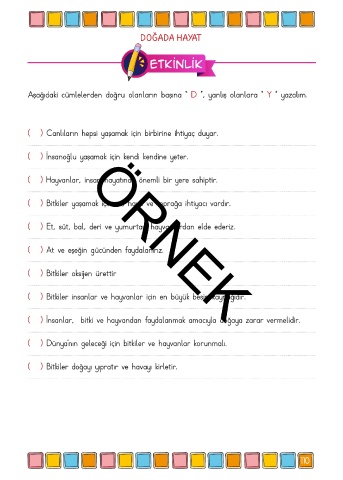 Aşağıdaki cümlelerden doğru olanların başına “ D ”, yanlış olanlara “ Y ” yazalım.