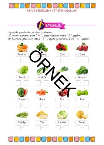 A) Meyve olanların altına “ M ”, sebze olanların altına “ S ” yazalım.