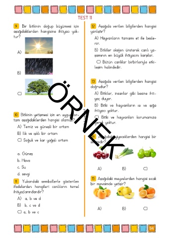 11 Yukarıdaki sembollerle gösterilen bir mevsimde yetişir?