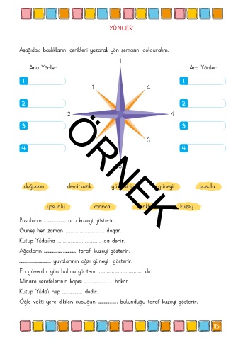 Aşağıdaki başlıkların içerikleri yazarak yön şemasını dolduralım.