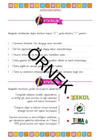 Aşağıdaki cümlelerden doğru olanların başına “ D ”, yanlış olanlara “ Y ” yazalım.