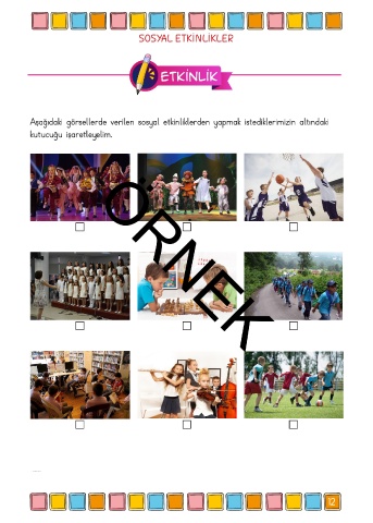 SOSYAL ETKİNLİKLER Etkinlik Aşağıdaki görsellerde verilen sosyal etkinliklerden yapmak istediklerimizin altındaki kutucuğu işaretleyelim. ÖRNEK 12