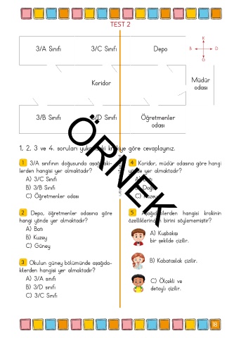 2 Depo, öğretmenler odasına göre 5 Aşağıdakilerden hangisi krokinin