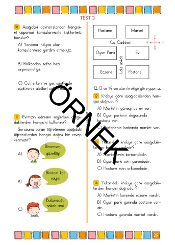 11 Evimizin adresini söylerken aşağı- B) Oyun parkının doğusunda