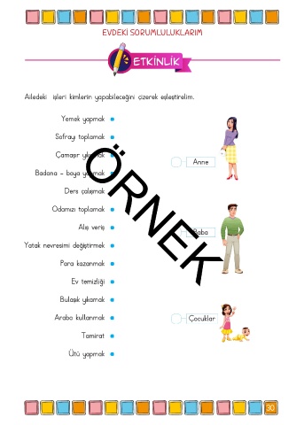 Ailedeki işleri kimlerin yapabileceğini çizerek eşleştirelim.