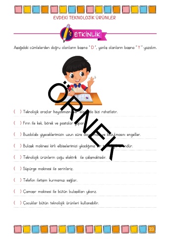 Aşağıdaki cümlelerden doğru olanların başına “ D ”, yanlış olanların başına “ Y ” yazalım.