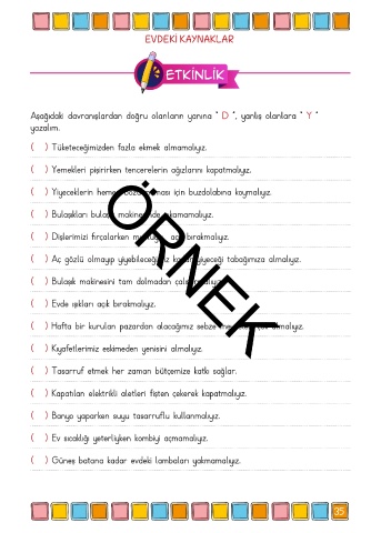 Aşağıdaki davranışlardan doğru olanların yanına “ D ”, yanlış olanlara “ Y ”