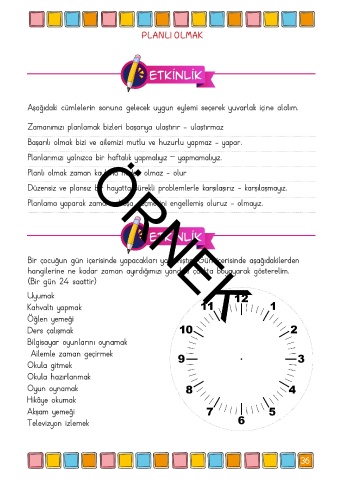 hangilerine ne kadar zaman ayırdığımızı yandaki çarkta boyayarak gösterelim.
