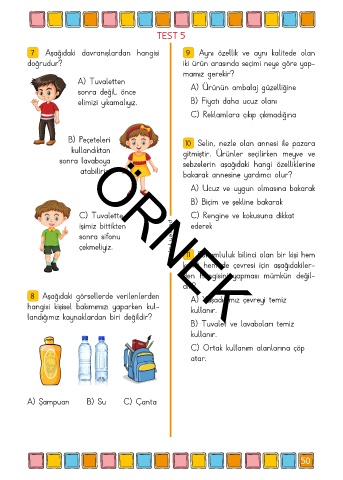 B) Peçeteleri 10 Selin, nezle olan annesi ile pazara