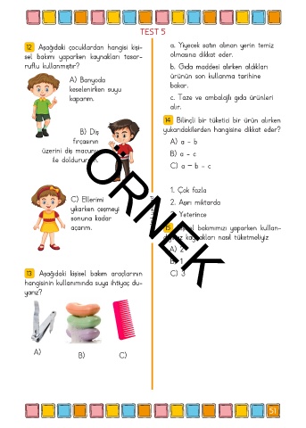 12 Aşağıdaki çocuklardan hangisi kişi- a. Yiyecek satın alınan yerin temiz