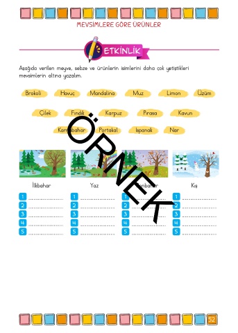 Aşağıda verilen meyve, sebze ve ürünlerin isimlerini daha çok yetiştikleri
