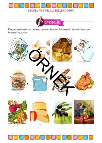 DENGELİ VE SAĞLIKLI BESLENİYORUM Etkinlik Dengeli beslenmek için yememiz gereken besinleri belirleyerek altındaki kutucuğu kırmızıya boyayalım. ÖRNEK 55