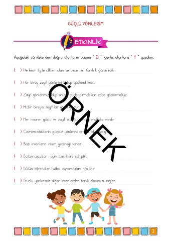 Aşağıdaki cümlelerden doğru olanların başına “ D ”, yanlış olanlara “ Y ” yazalım.