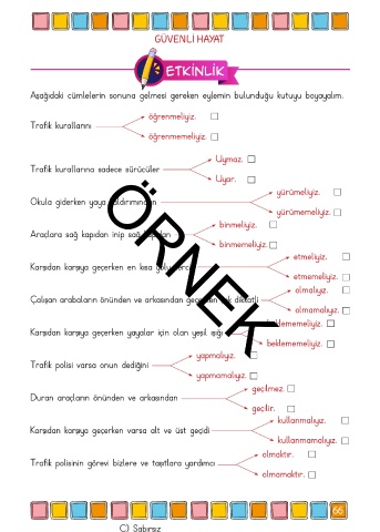 Aşağıdaki cümlelerin sonuna gelmesi gereken eylemin bulunduğu kutuyu boyayalım.