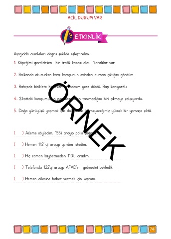 ( ) Telefonda 122’yi arayıp AFAD’ın gelmesini bekledik.