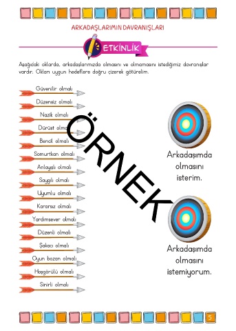 Arkadaşlarımıza karşı aşağıdaki davranışlardan hangilerini yaparsak olumlu etkilenir? Aşağıdaki oklarda, arkadaşlarımızda olmasını ve olmamasını istediğimiz davranışlar