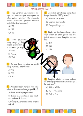 4 Aşağıdakilerden hangisi evde olu- A) 122 – AFAD
