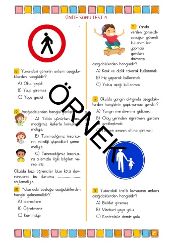 C) Yaya geçidi 12 Okulda yangın çıktığında aşağıdaki-