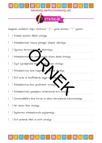 ( ) Arkadaşlarımıza karşı hoşgörülü ve dürüst olmalıyız.