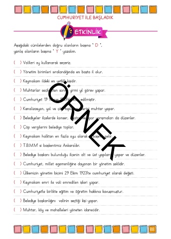 ( ) Ülkemizin yönetim biçimi 29 Ekim 1923’te cumhuriyet olarak değişti.