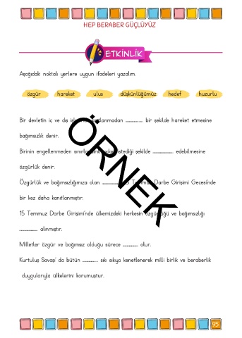 Milletler özgür ve bağımsız olduğu sürece ………………… olur.