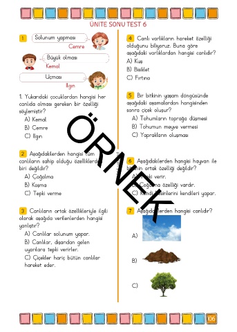 1. Yukarıdaki çocuklardan hangisi her 5 Bir bitkinin yaşam döngüsünde