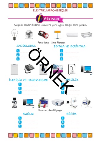 Aşağıdaki araçları kullanım alanlarına göre uygun başlığın altına yazalım.