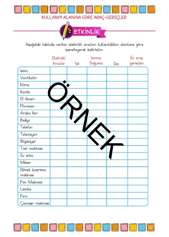 KULLANIM ALANINA GÖRE ARAÇ-GEREÇLER