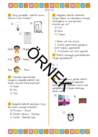 13 Hangi görseldeki elektrikli aracın 16 Aşağıdaki elektrikli aletlerden