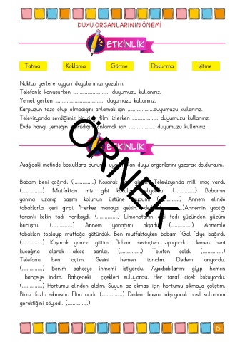 Aşağıdaki metinde boşluklara duruma uygun olan duyu organlarını yazarak dolduralım.