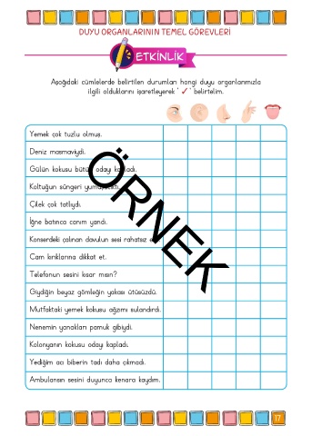 Aşağıdaki cümlelerde belirtilen durumları hangi duyu organlarımızla