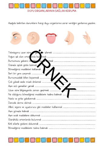 Aşağıda belirtilen durumların hangi duyu organlarına zarar verdiğini yanlarına yazalım.