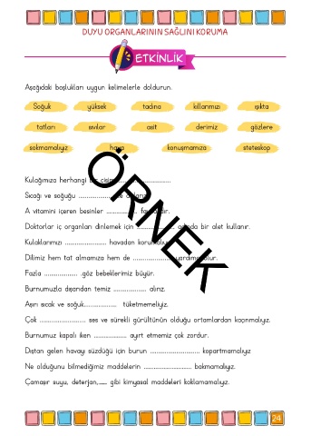 Aşağıdaki boşlukları uygun kelimelerle doldurun.