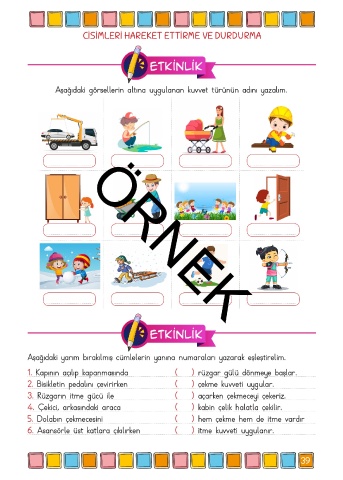 Aşağıdaki görsellerin altına uygulanan kuvvet türünün adını yazalım.