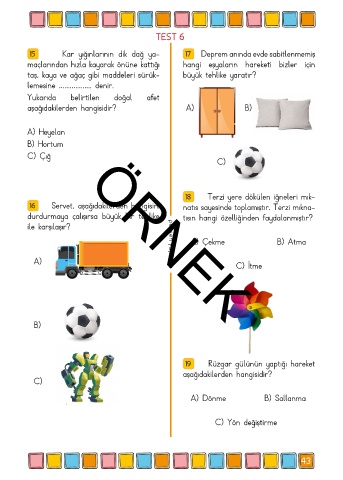 15 Kar yığınlarının dik dağ ya- 17 Deprem anında evde sabitlenmemiş