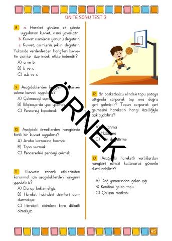 çekme kuvveti uygularız? 12 Bir basketbolcu elindeki topu potaya