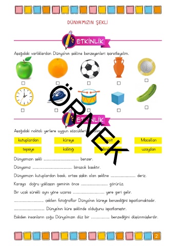 Aşağıdaki varlıklardan Dünya’nın şekline benzeyenleri işaretleyelim.