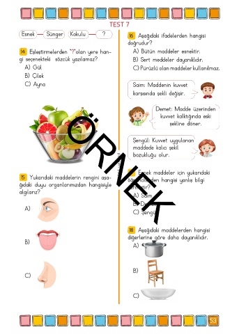 14 Eşleştirmelerden “?“olan yere han- A) Bütün maddeler esnektir.