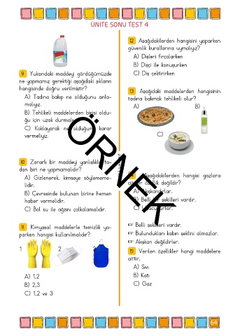 11 Kimyasal maddelerle temizlik ya- + Belli şekilleri vardır.