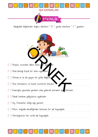 Aşağıdaki bilgilerden doğru olanlara “ D ”, yanlış olanlara “ Y ” yazalım.